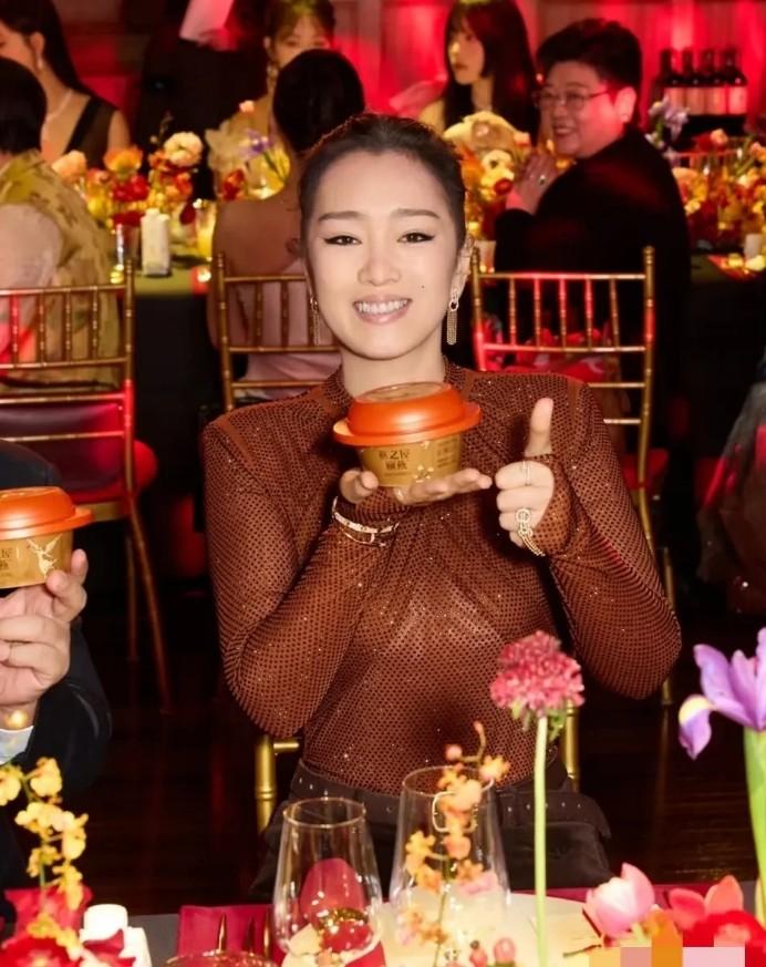 鞏俐給人的感覺特別有鮮活力,完全就不像是快60歲的女人,尤其是笑起來的時候,臉上的膠原蛋白依舊很充足,面部線條流暢更顯年輕,深紅色的亮片上衣,更是襯得她的氣色紅潤有光澤。