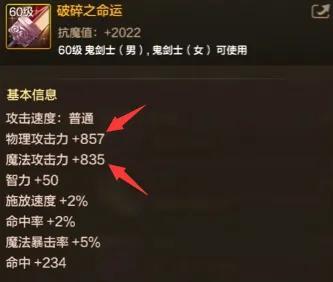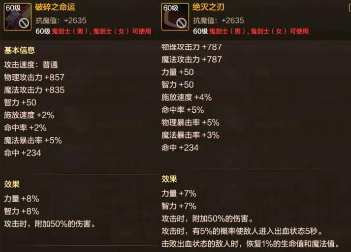 “破碎之命運”相較於“殺豬刀”,多了「80物攻、48魔攻、2%魔法暴擊」,
