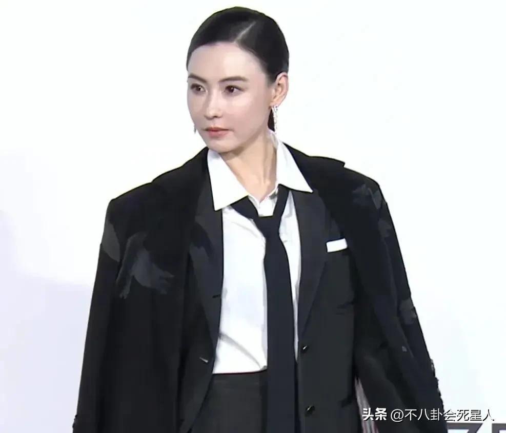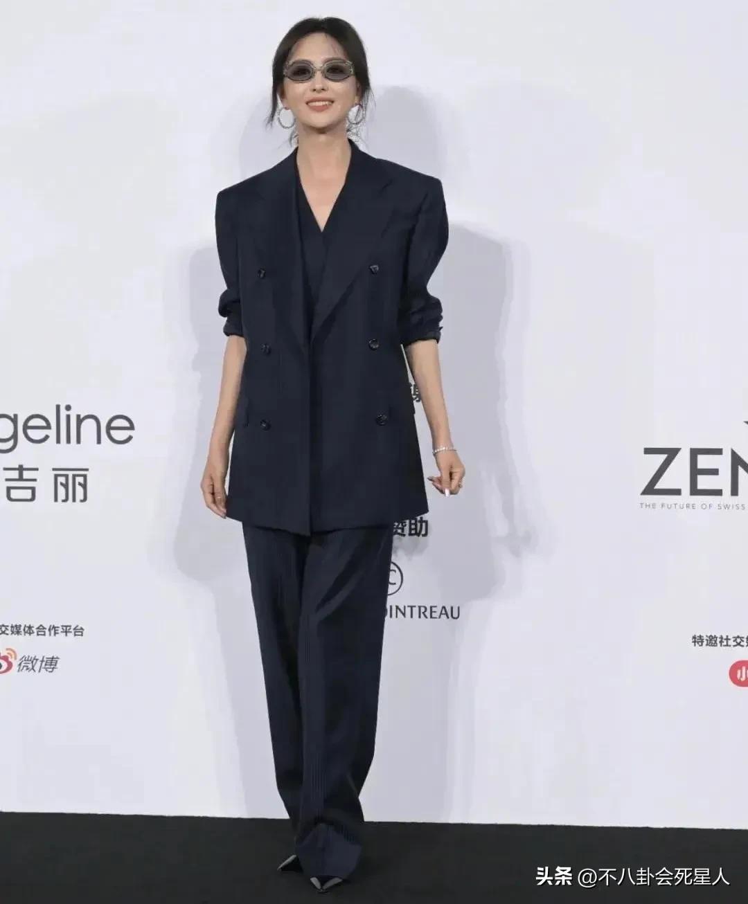 郭碧婷雖然長相五官很有優勢,不過這次走的卻是中性風格,穿寬大的西裝和大背頭,看起來很有御姐範,但就不如楊冪有兩點了。