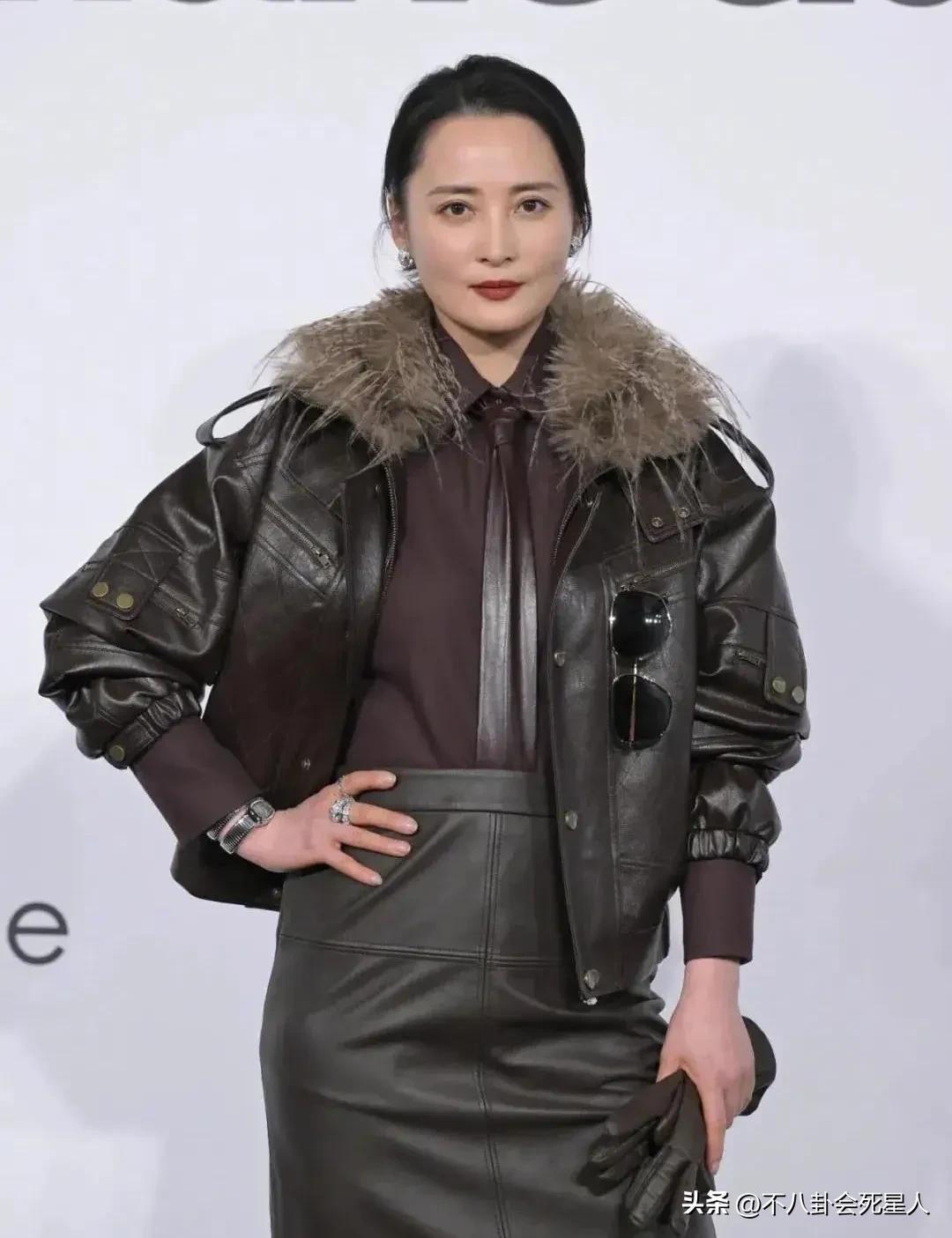 49歲的蔣勤勤一套皮裙套裝,外套還加了毛領,增添了幾分氣場,不得不說,蔣勤勤保養得太好了,簡單的髮型和妝容下,她的臉看起來緊緻飽滿,不輸年輕女星。