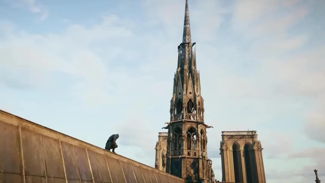 Caroline提到,巴黎聖母院標誌性的尖頂是在19世紀才被加上的,而《刺客信條:大革命》的故事發生在18世紀,因此團隊曾爭論過是否要在遊戲中去掉尖頂部分。考慮到在大衆的印象中,尖頂已經是巴黎聖母院不可缺少的一部分,最終尖頂得到了保留並被做成了鳥瞰點。