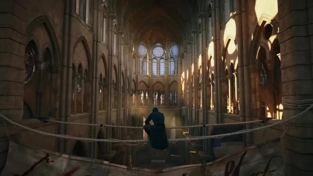 比如Caroline團隊在室內二樓增加了橫跨建築內部的纜索,方便玩家隨時跨越兩側的走廊或是從高處進行暗殺;而建築的外沿,也增加了可供攀爬的嵌板,讓玩家可以充分利用遊戲中的跑酷機制去探索巴黎聖母院的外牆和頂樓。