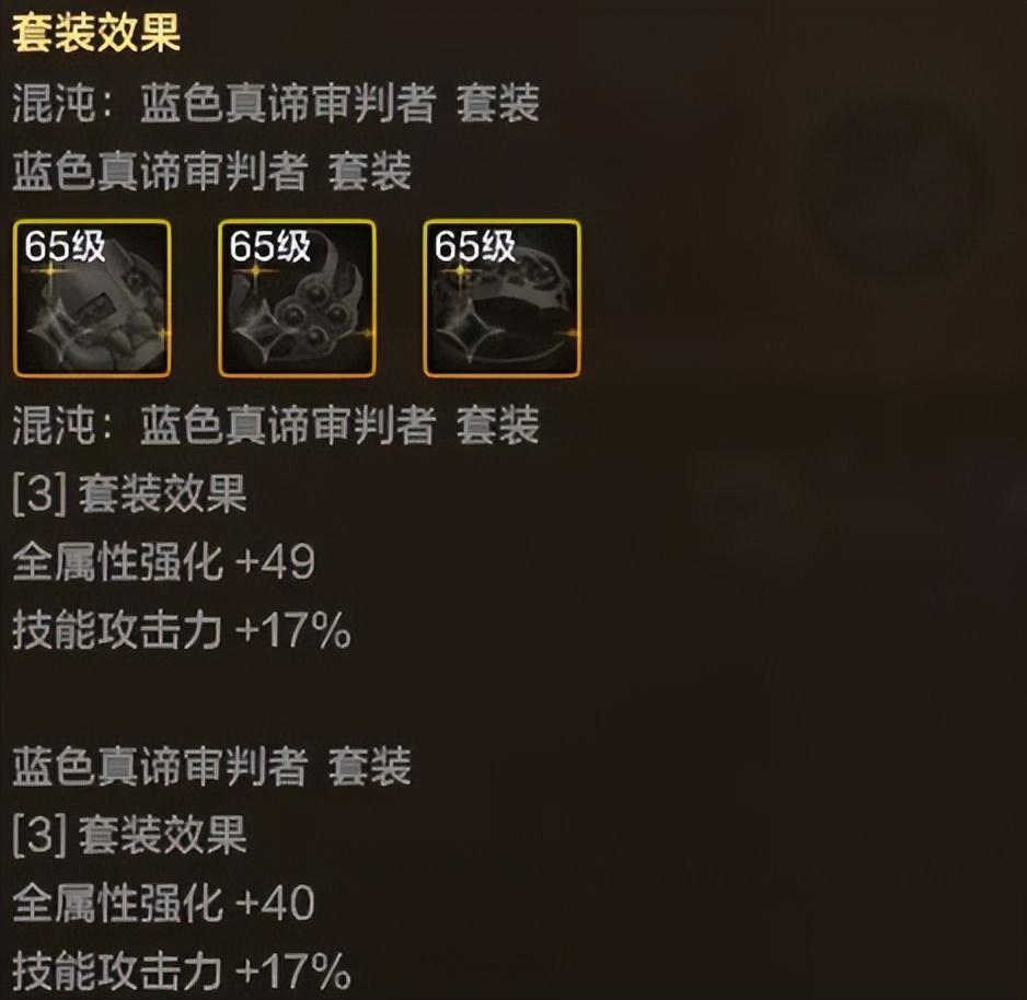 然後總結一下:60級首飾套可升65混沌首飾,屬性提升。混沌波動套提升4.2%左右,淘汰團魂骨。混沌黎明套提升6%左右,隨機。混沌藍色套提升6.9%左右,不如前兩者。混沌戰爭套主打功能,推薦波動和黎明套。