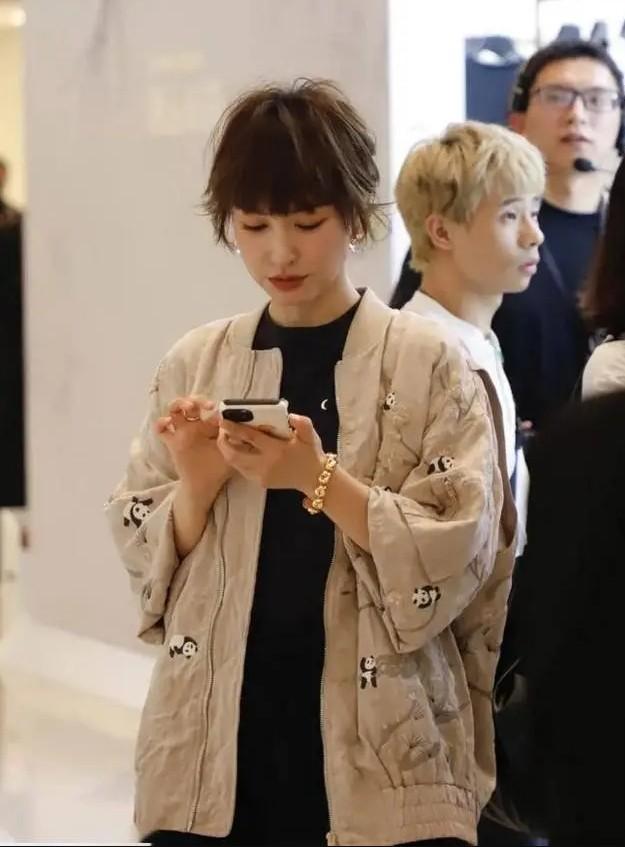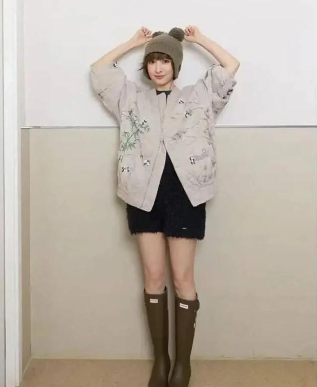 吳昕身上穿的這件新中式外套,通過竹子和熊貓的刺繡進行點綴,顯得造型特別精緻有趣,內搭黑色T恤和毛絨短褲,分分鐘玩轉混搭風,將時尚感拿捏的恰到好處。
