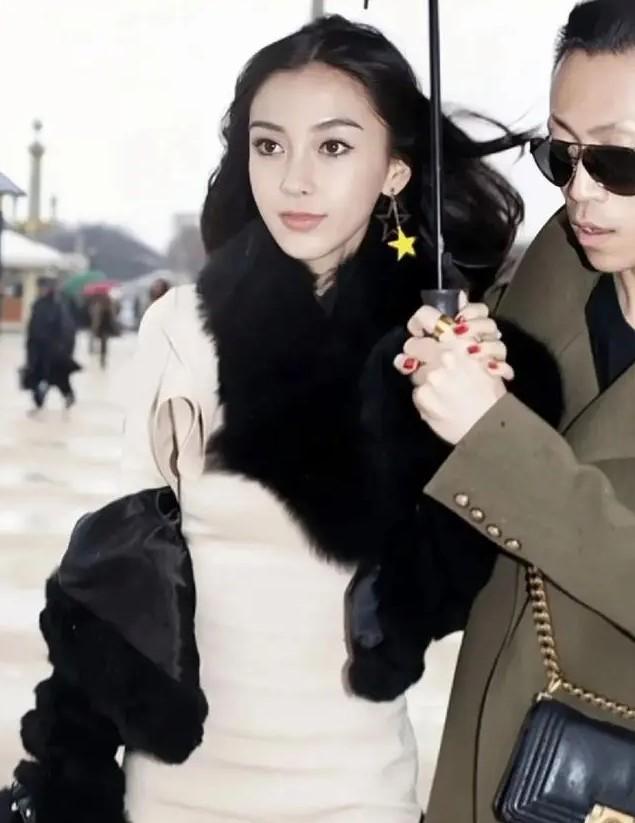 楊穎搭配白色包臀裙的時候,還佩戴了一款黑色皮草圍巾,甚至在外面疊搭了一件皮草外套,將外套脫一半顯得太性感了,配合上一頭標誌性的大波浪捲髮,襯托的黃色星星耳環格外耀眼。