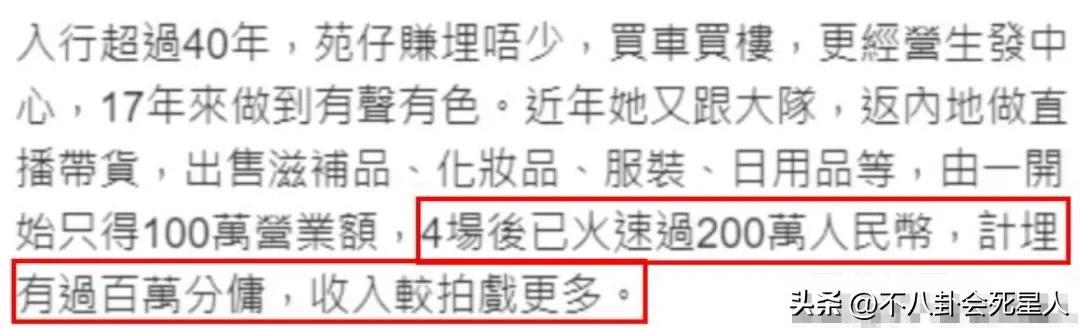 60歲的苑瓊丹就說過自己未來5年內都不會拍戲了,她如今在內地一場直播下來光拿佣金就能拿到100萬,一個月只需要做4場直播就能賺到比拍戲還多的錢了。