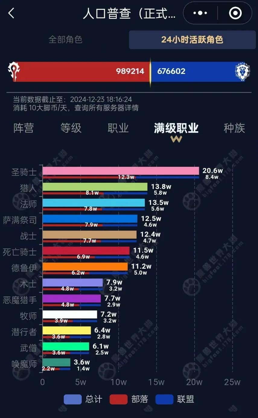 無論總數還是24小時活躍數都是最低。該職業目前綁定龍希爾種族,也是其冷門的一個原因