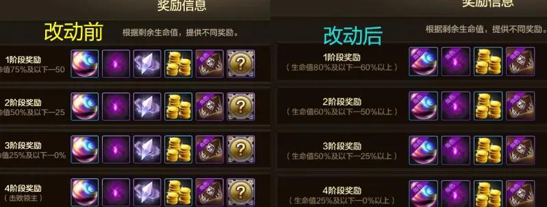 暗改點2:之前體驗服可以掉落奇蹟變換石和白金徽章,現在把這2個道具全刪了,只剩下爐巖炭、混沌之息等常規材料了。