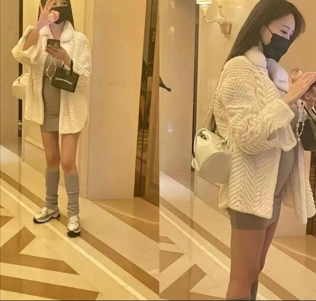 一身白色的羊羔毛外套,讓葉柯看上去清純可人。由於羊羔毛的獨特質感,還給人一種溫暖的感覺。一頭黑色的長髮柔順飄逸,雖然戴着口罩,但還是掩蓋不出其出衆的氣質,怪不得就連黃曉明也曾倒在她的石榴裙下。