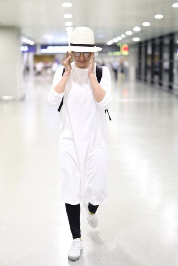 爲了避免出現水桶身材,蔣雯麗下半身的穿搭選擇實在是太明智了。一條黑色的打底褲在視覺上和寬鬆連衣裙形成了巨大反差,更顯小腿的修長和纖細,在視覺上避免了過於寬鬆帶來的臃腫感。
