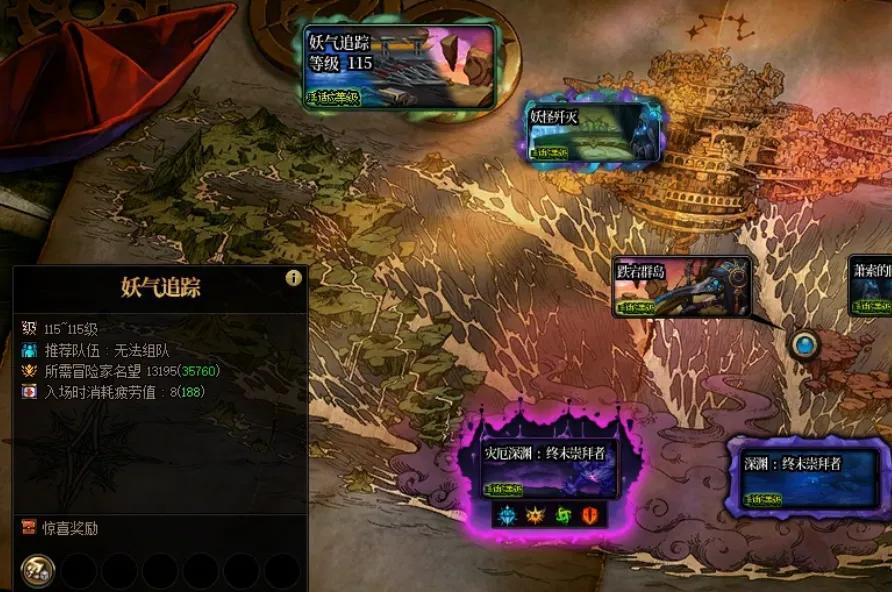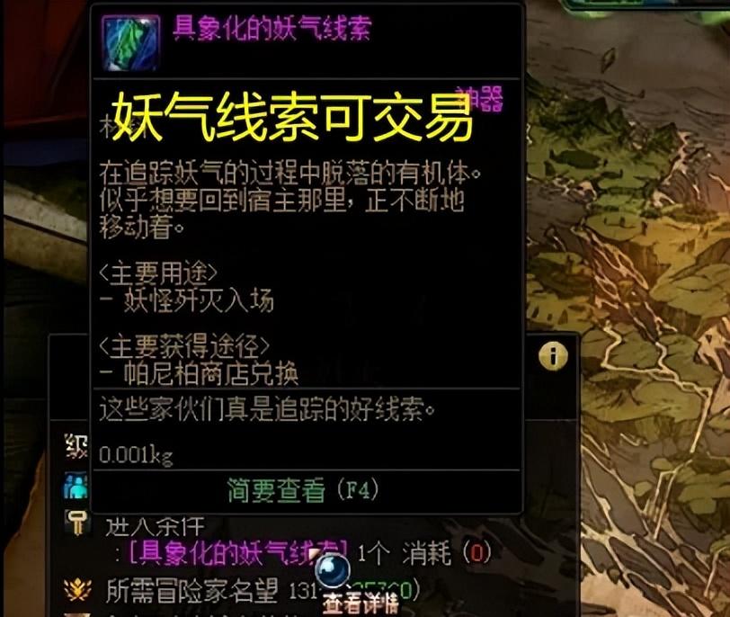然後總結一下:“重力之泉”版本可搬磚,分“妖氣追蹤”和“妖怪殲滅”兩圖,“妖怪殲滅”收益高但需門票“妖氣線索”。可通過加百利商店或拍賣行獲取,價格低時推薦搬磚,高時收益有限。