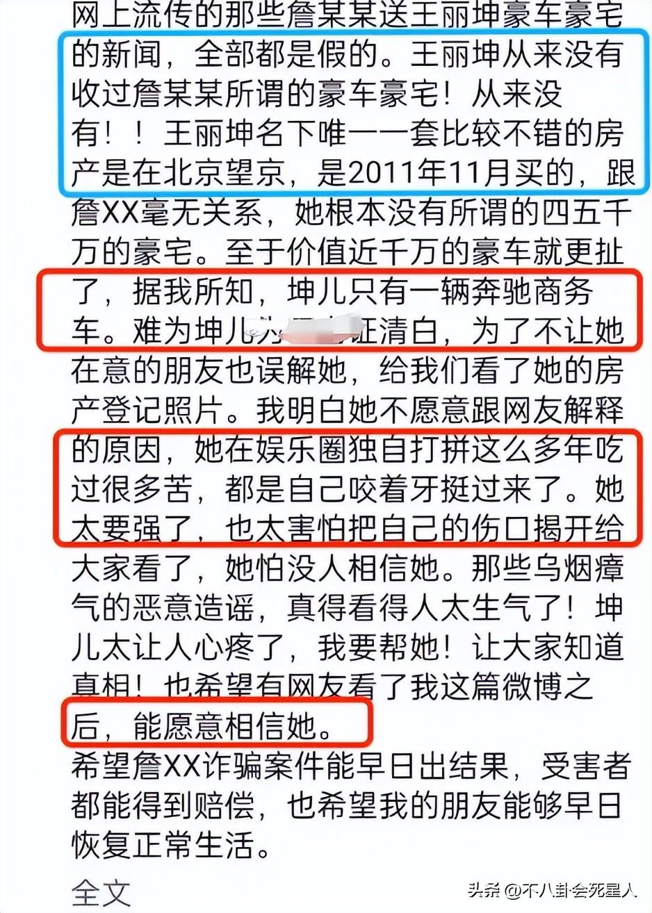 不過之後王麗坤閨蜜已經出面澄清,原來王麗坤也是被她老公騙了,王麗坤名下的房產和車子都是自己的。