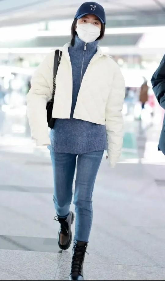 在一次機場的出行中,譚松韻徹底的放飛自我,藍色的長毛衣套着短款的白色羽絨服,將個性的穿搭品位進行了完美的展現,如此獨特的搭配美的讓人認不出。