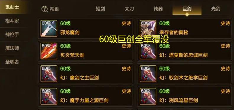 但至少現在看來,所有60級巨劍可以說都已經“全軍覆沒”了!