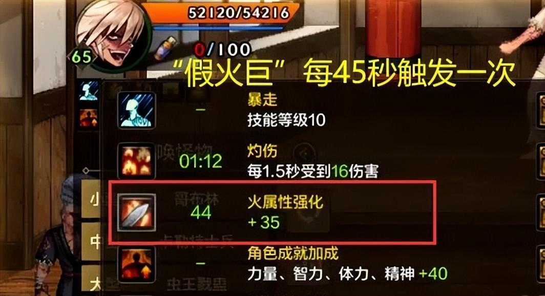 指的是,釋放“暴走”可觸發35火強,但只能持續45秒,每隔45秒就需要重新再釋放一次暴走。