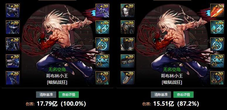 相比於紅眼最佳搭配“暴傷刀+深海套+混沌波動套+混沌鬥者”,二者差距依舊在13%左右。
