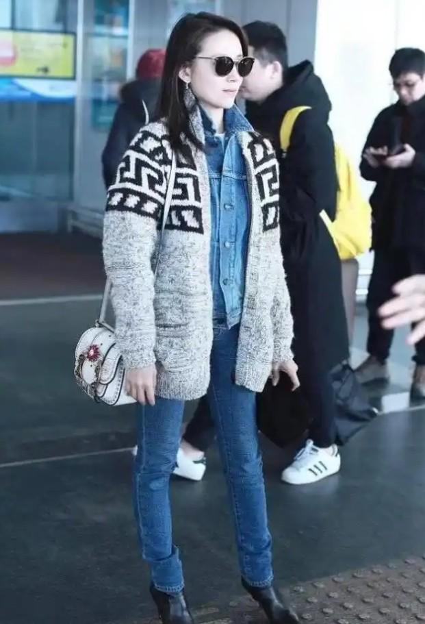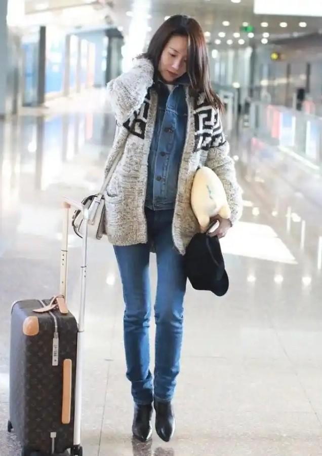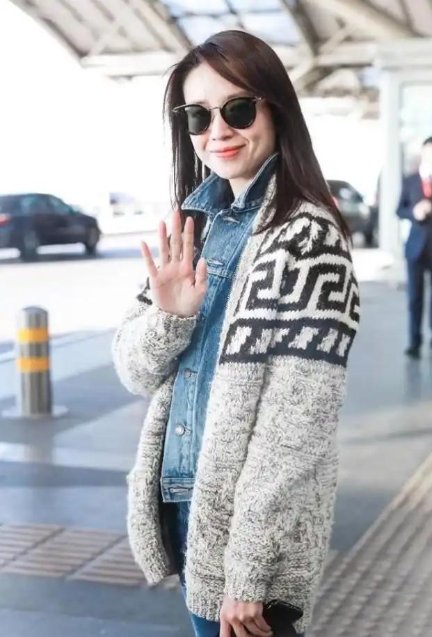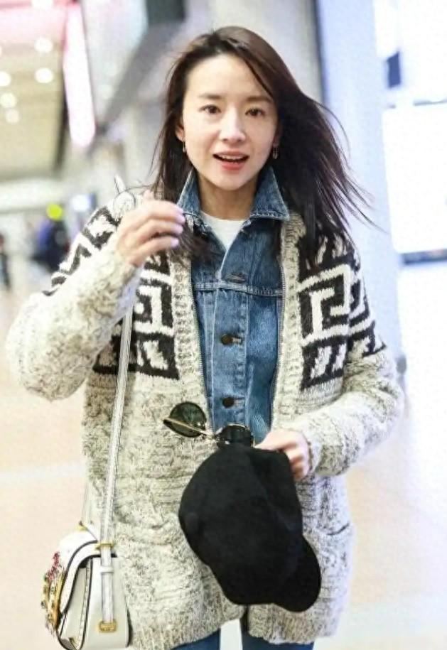 44歲董潔走機場被偶遇!穿奶奶衫配牛仔套,不僅不土氣竟時尚減齡