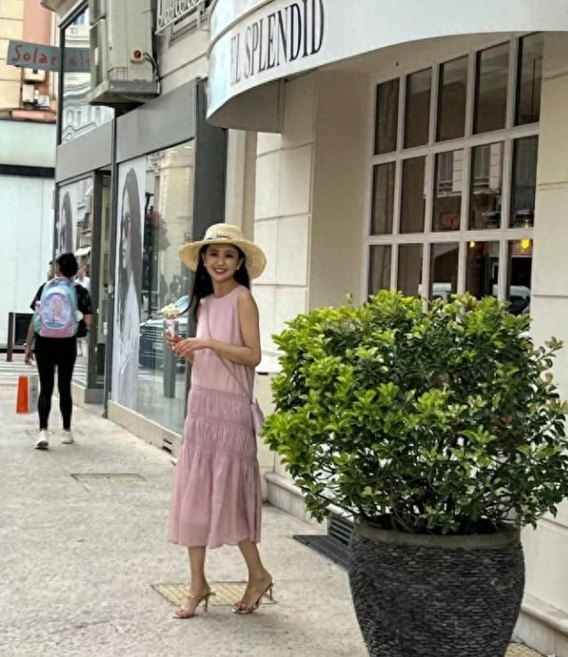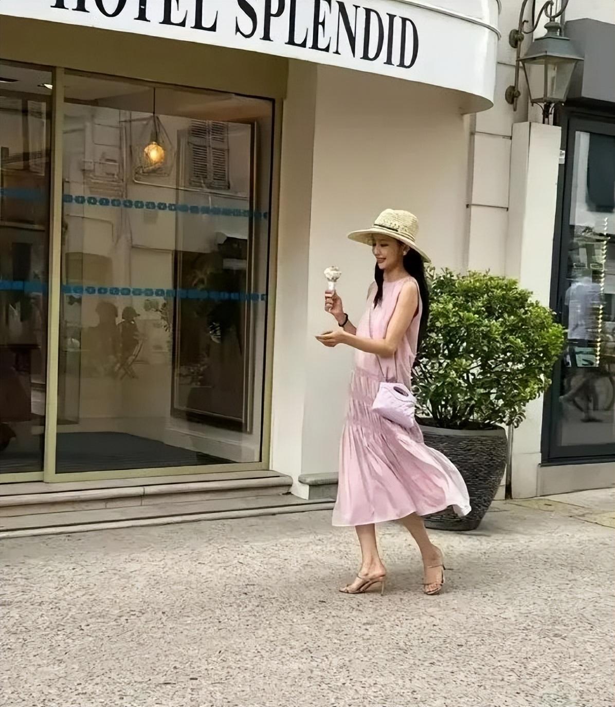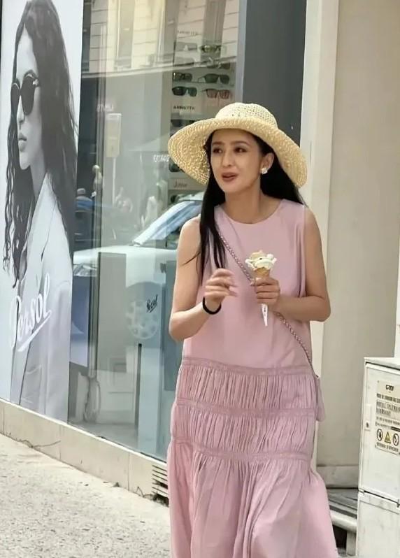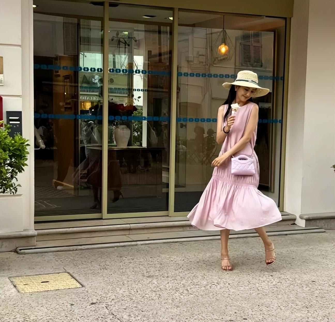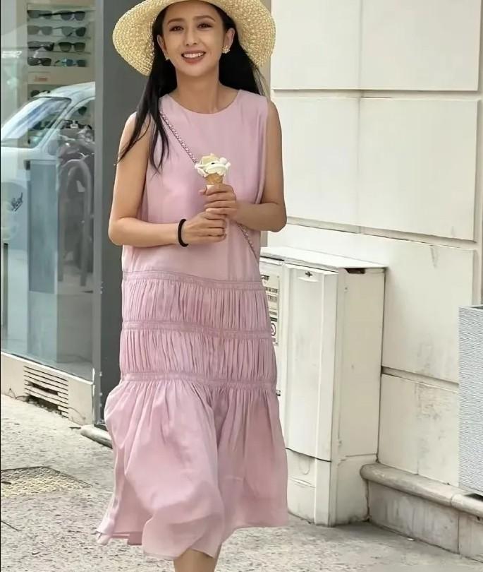 佟麗婭國外街頭被偶遇,穿粉色長裙似少女,本人好黑難掩盛世美貌