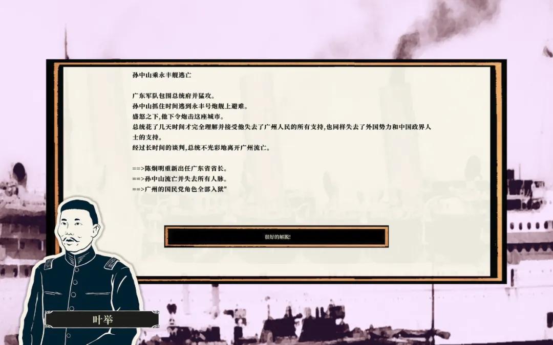 在寫下這篇文章前,我剛剛完成了一次經典歷史致敬:扮演陳炯明的我在廣州發起兵變,逼着國父逃到永豐艦,最終流亡上海。這段過程帶給我的沉浸感和震撼遠大於閱讀任何一本民國曆史專著——我可能一輩子都忘不掉自己炮轟總統府的那個下午。