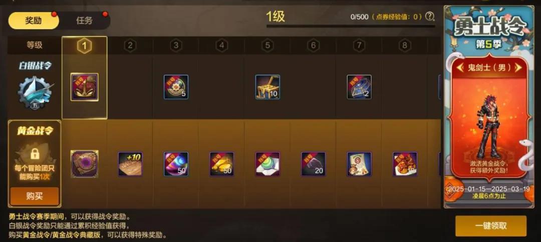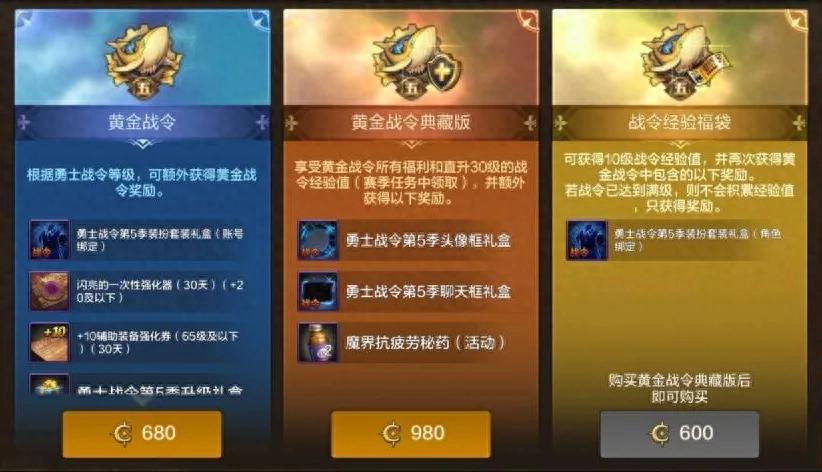 主要玩法還是一樣,主要分爲2個檔次,680點券黃金戰令;980點券典藏版戰令,直升30級還能拿到額外的頭像框。