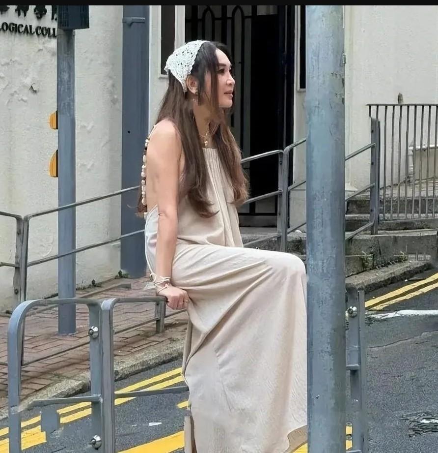 一襲米色的吊帶長裙輕盈飄逸,讓溫碧霞在街頭散心和遊玩的時候沒有束縛感,塑造了溫柔、優雅的個人形象。寬鬆的長裙款式對於身形有較好的包容性,可以掩飾一些身材上的小瑕疵。吊帶設計則有助於突出肩頸線條,讓造型更亮眼。揚長避短,這也是彌補年齡感的有效穿搭技巧。
