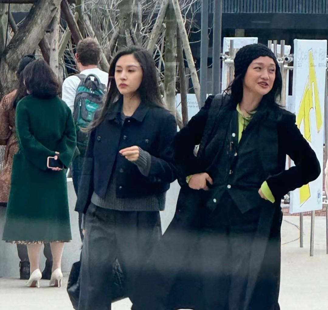周迅頭戴的針織毛線帽,保暖又時尚。黑色的長款大衣酷感滿滿,可以塑造高挑的身形。