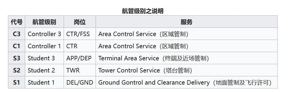 VATSIM中對於航管玩家也有着細緻的分類和說明