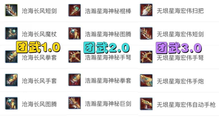 這也不算空穴來風,因爲在助手的裝備庫中,也的確存在全職業的無垠星海武器,這也就是我們俗稱的“團本武器3.0”。