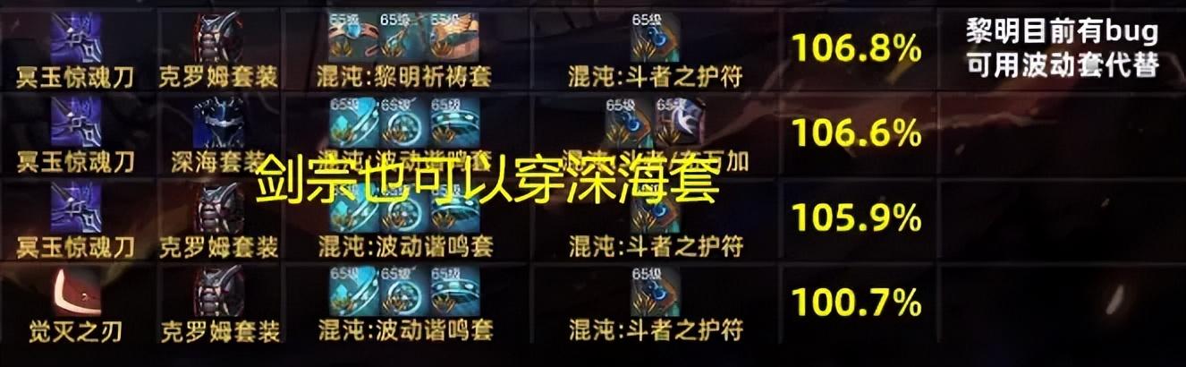 而且即便在這種環境下,像劍魂、劍宗、魔道、奶媽等職業,也依舊可以選擇“深海套”,只比最強搭配低了一點點而已。