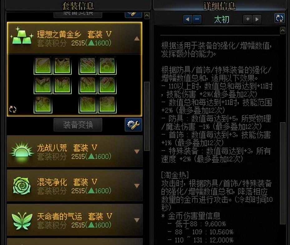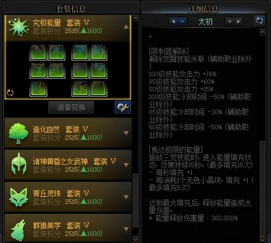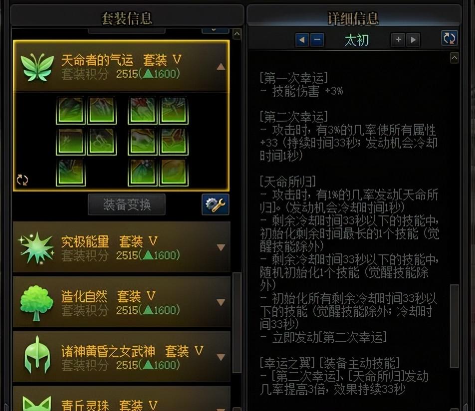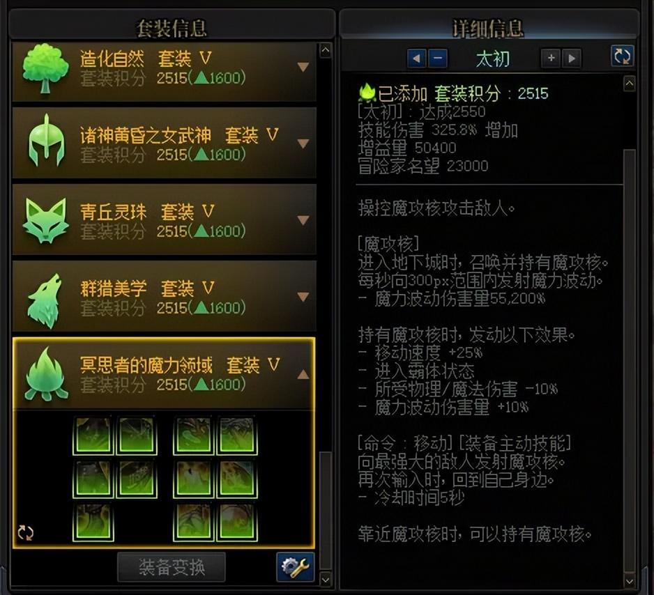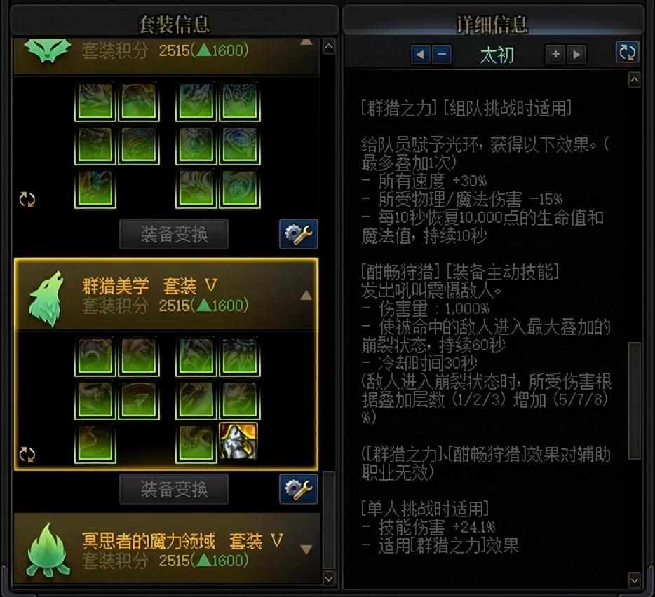 當然最重要的還在於,爆出了什麼的太初裝備,就儘量選擇對應套裝,反正更換裝備挺簡單的。