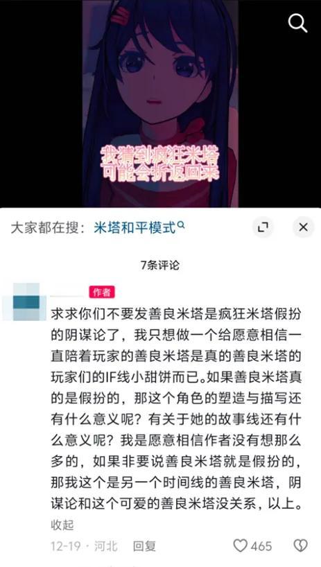 不過相比起來,採訪中有關“製作善良米塔結局的消息”更加引人注目,也自然成了辯論戰的又一條焦點。在官方更新實質內容前,雙方大概率誰也沒能說服誰——但是,真的是所有人希望得到一個準確的答覆嗎?