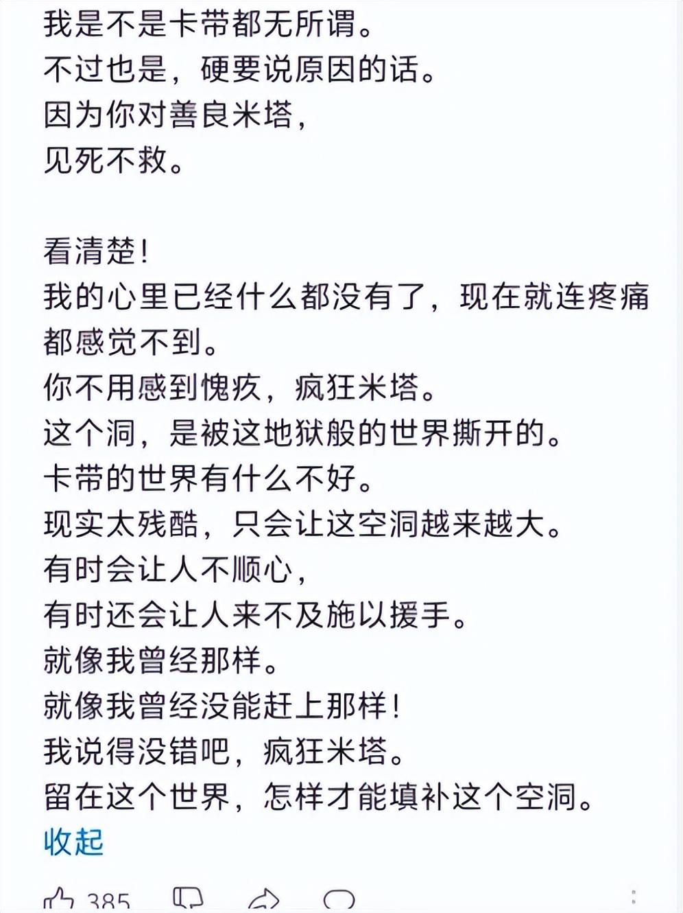 不過這次也有不同,在“米塔我老婆”和“我無法拯救所有人”的發癲之外,還有不少堪稱激烈的辯論。