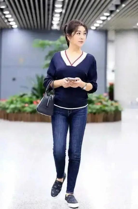 條紋衫是屬於非常經典百搭的單品,而且完全不會挑剔年齡和身材,就算是中老年記得的女性也可以放心嘗試。條紋元素的距離也要把控好,千萬不要太窄,像江珊這種寬條紋修飾性就更好,並且也更顯瘦。