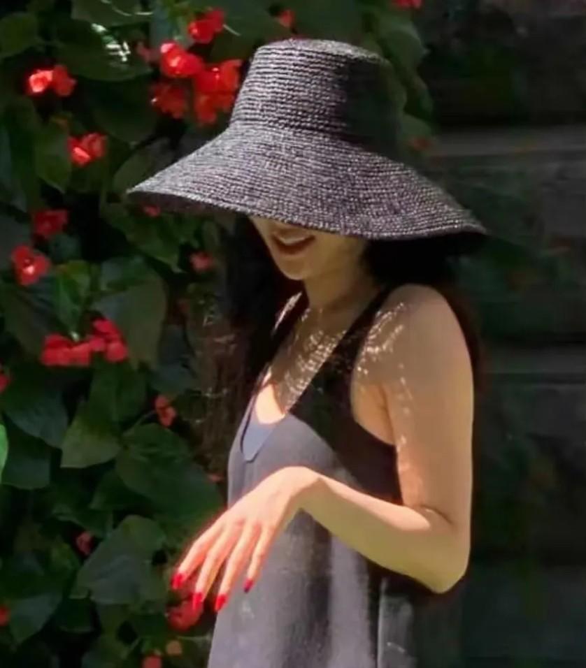 同灰色系的寬檐帽遮陽效果那是槓槓的,和灰色的吊帶裙共同塑造出了和諧的視覺效果。寬檐帽獨特的編織設計,爲單調的灰色系搭配帶來了更加飽滿的穿搭層次。如此休閒又不失時尚感的夏日造型,只能感嘆,張嘉倪太會穿啦!