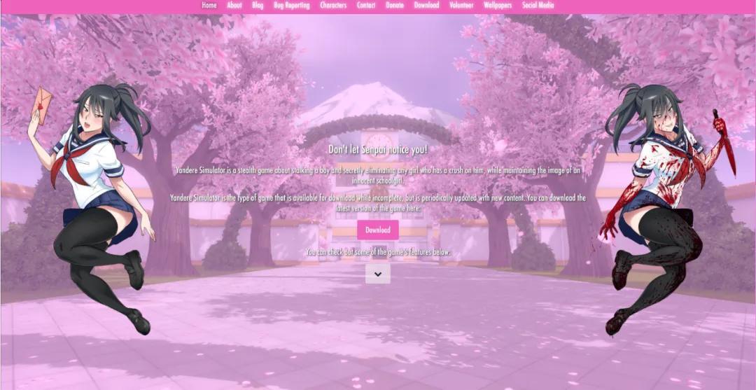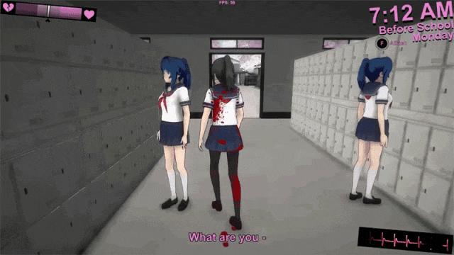 起初,Alex也沒想過到底該怎麼把遊戲做好。他只是找到了一個便宜的“動漫女學生”角色模型,搭建了一個簡陋的校園場景,然後把角色們丟進去模擬他想要的效果:玩家將扮演一名爲了追求喜歡的學長(Senpai)不擇手段的病嬌(Yandere),在校園生活中想盡辦法解決潛在的情敵,包括但不限於散步流言逼人退學,惹禍犯事嫁禍他人,假如你願意的話,殺人滅口毀屍滅跡同樣也是行之有效的備選方案。