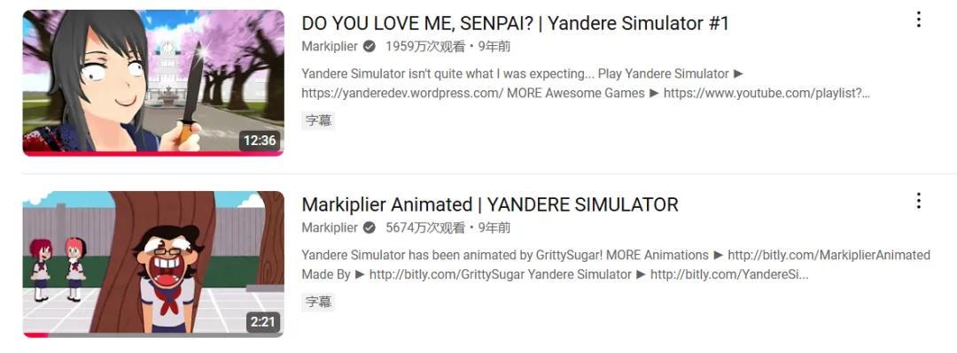 在二次元文化的底色尚未徹底滲透互聯網的2014年,《病嬌模擬器》的遊戲理念足夠獵奇,也足夠有趣。Alex和他的遊戲趕上了Youtube黃金時代的尾聲,頻繁現身於各位油管博主的視頻當中,千萬播放的爆款視頻層出不窮,算是將“病嬌”的含義推廣給了廣大歐美路人觀衆。