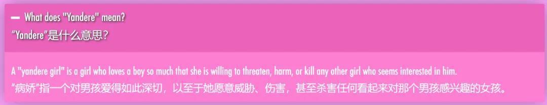 打開《病嬌模擬器》的官網,點擊相關內容簡介,你會找到作者Alex對病嬌的基本定義,即“因愛得深沉而動手傷人”的角色。
