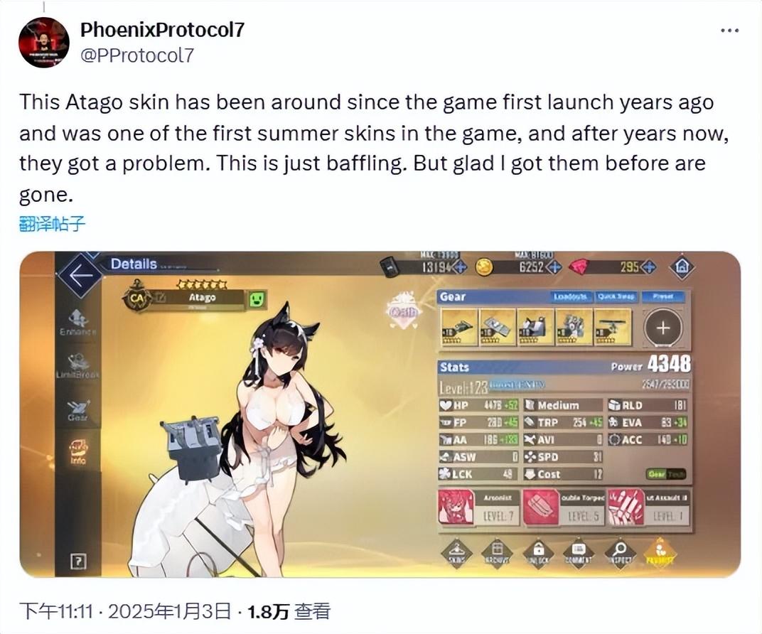更加弔詭的是,無論是《碧藍航線》國際服本身,還是Google Play商店在架的其他遊戲應用中,不少比遭到下架的服裝看起來更加“清涼”的皮膚卻相安無事,許多不明真相的歐美玩家開始追問“谷歌的審查標準到底怎麼回事”。