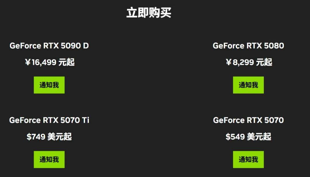 中國官網也放出了國內價格,其中5080爲8299元起,中國特供版5090D則是16499元起