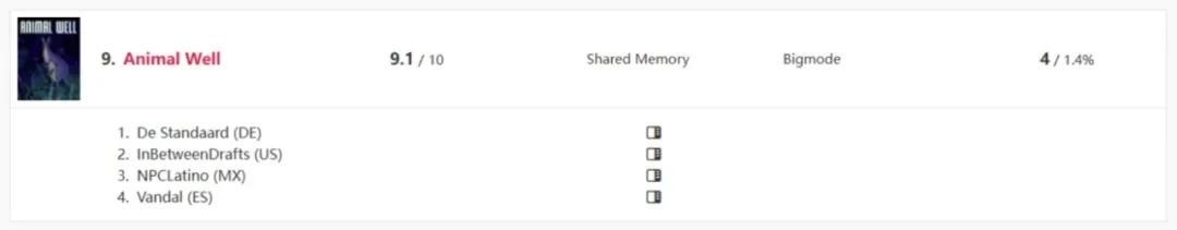 相比之下,2024年的另一部爆款獨立遊戲《動物井》的境遇明顯要慘淡得多。儘管兩部作品的媒體評分和玩家口碑不分上下,但《動物井》卻只當選了4家媒體的年度遊戲,也難怪許多喜歡《動物井》的玩家都在抱怨,去年獨立遊戲界的風頭全被《小丑牌》搶走了。