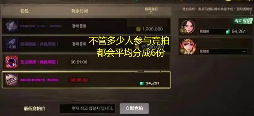 【3】不管多少人蔘與競拍,成交價都會平分爲6份!
