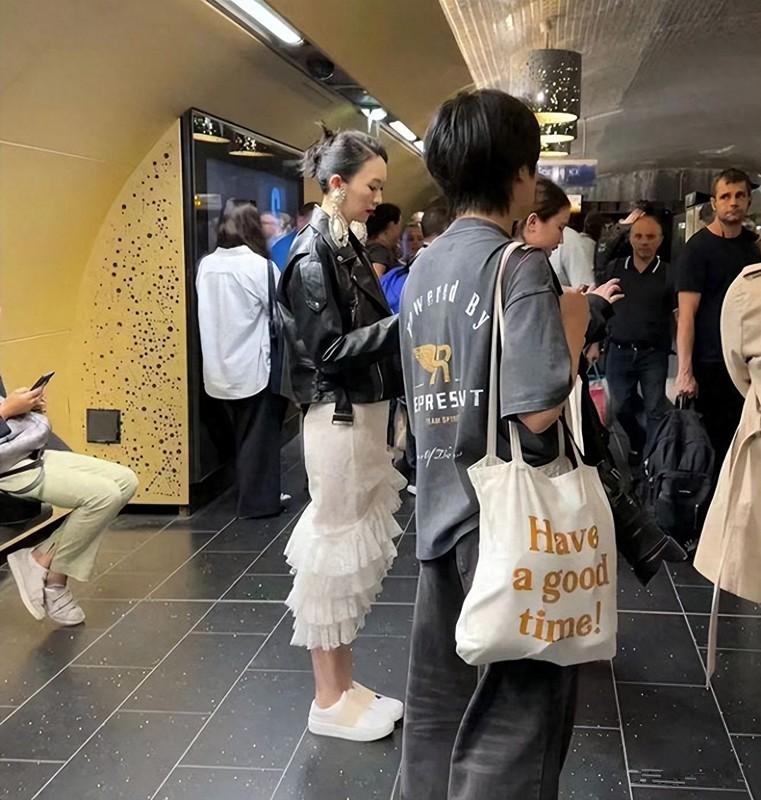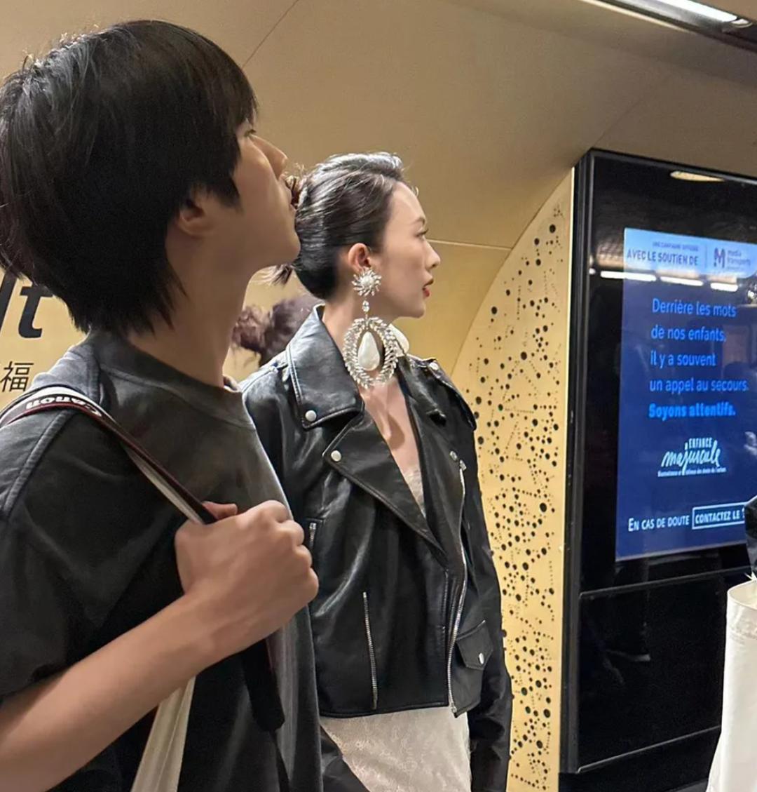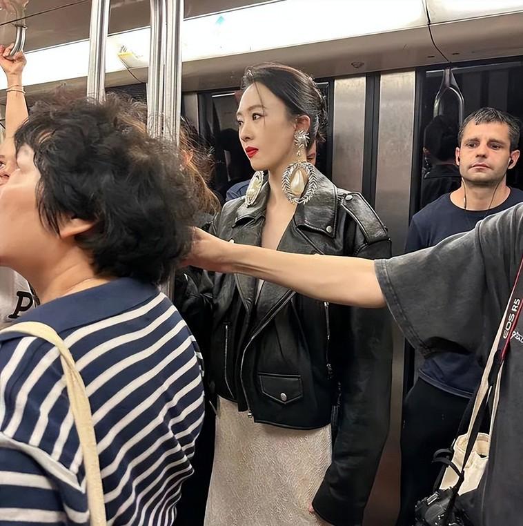 39歲童瑤亮相巴黎地鐵,皮衣配白裙氣質感爆棚,路人老外看直眼了