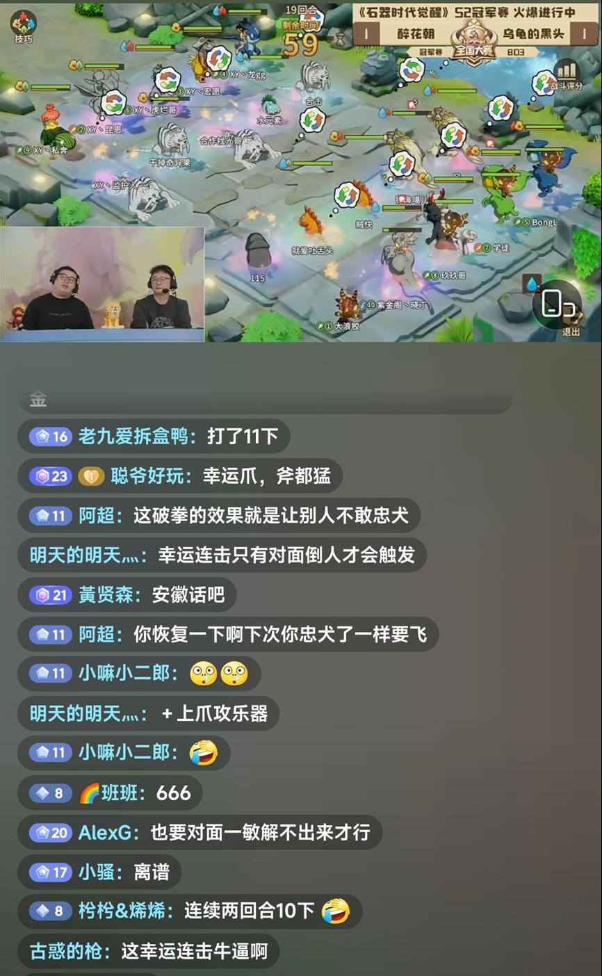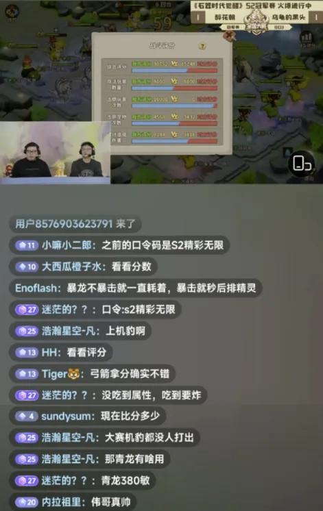 解決這一點的方式說來也不難——在《石器時代:覺醒》的比賽中,官方就請到了玩家社區中人氣很高的“猛獁象”和“啊偉 ”兩名職業主播來擔任解說。兩位主播都是遊戲的忠實玩家,觀衆對於他們的遊戲理解和職業水平都有着充分的認可。遊戲中還使用了可視化的計分板,協助玩家理解場上局勢。熱鬧無比的現場評論區內,也有玩家主動分析局勢,給出自己的見解。