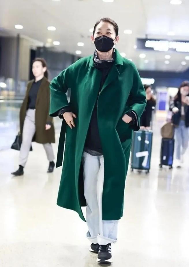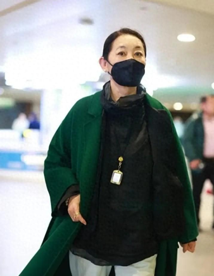 65歲倪萍素顏走機場也驚豔!穿綠大衣不僅不醜,竟然時尚又高級