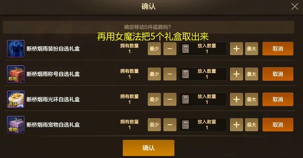 再用“女魔法”從冒險團倉庫中把這5個禮盒取出來,這時候就可以正常打開了!