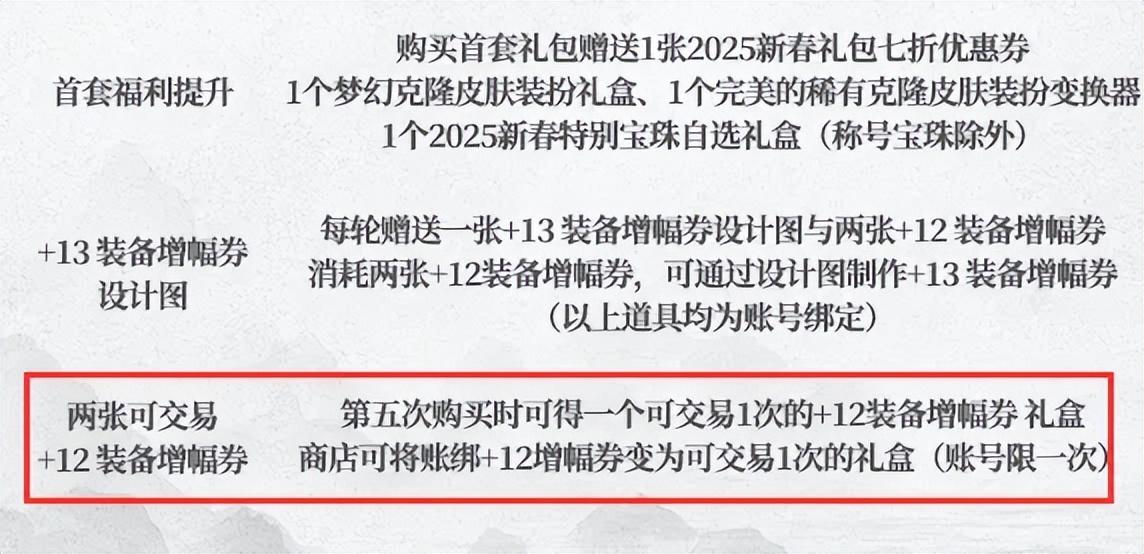 畢竟這也是首次在新春套中推出可交易的12增幅券,太貴了賣不出去,太便宜了還不如自己用。