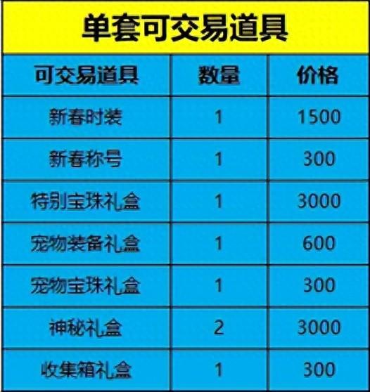 單套禮包的道具價格基本如上,主要說一下多買多送的道具。
