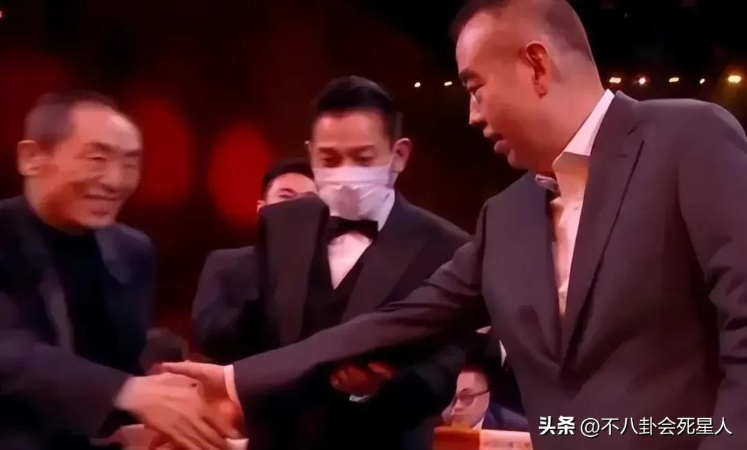前不久還有一個名場面,那就是在金雞獎頒獎典禮上,劉德華坐在陳凱歌和張藝謀的中間,當陳凱歌伸手要跟劉德華握手時,劉德華馬上把陳凱歌的手推到張藝謀面前,讓兩位大導演先握手,之後他才和陳凱歌握手。
