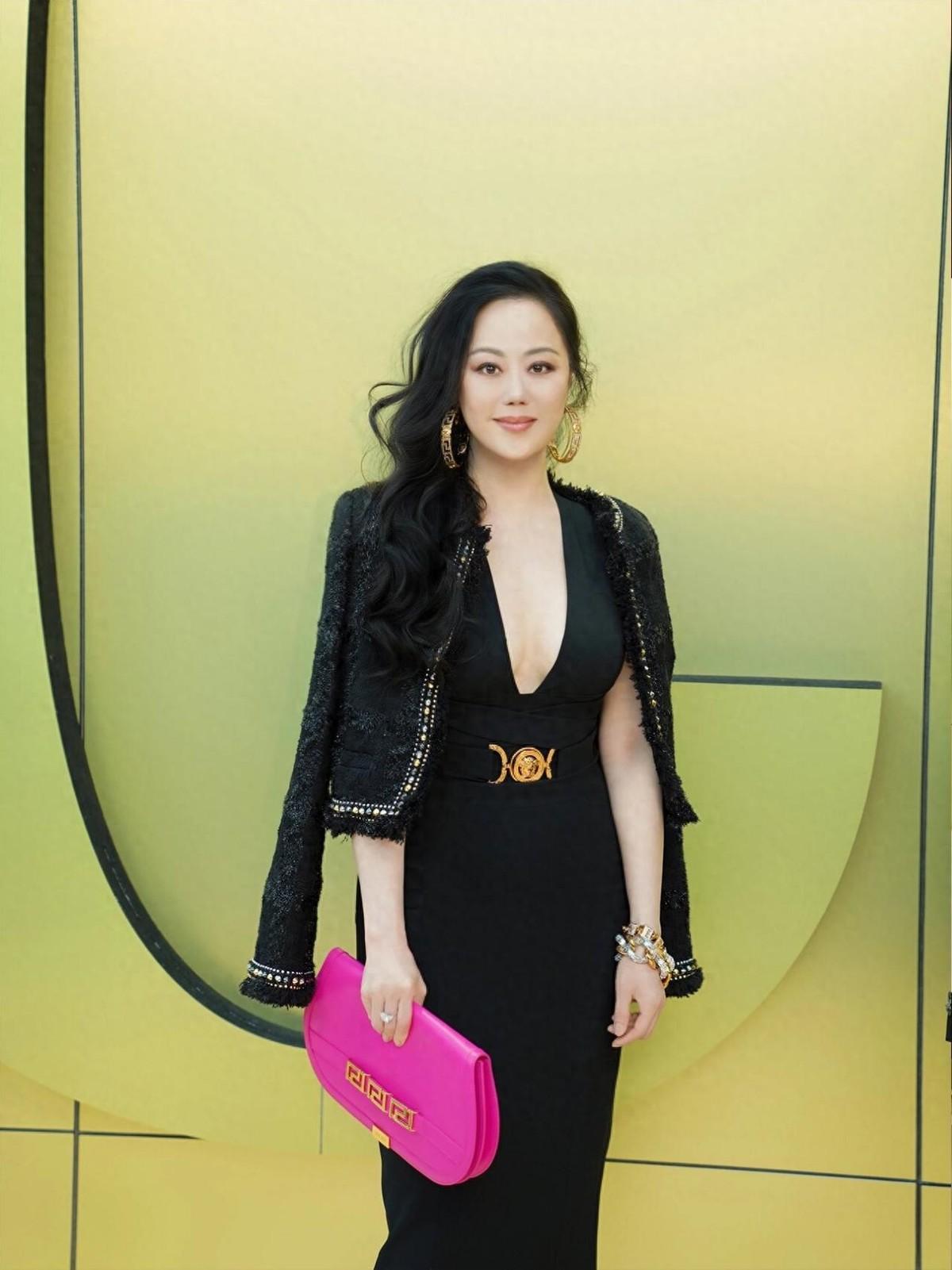 章小蕙這身allblack融入了不少金屬元素,黑色香風外套搭配性感十足的深V連衣裙,能hold住任何場合!小仙女們基本可以直接複製她這套思路,當然咱們普通人不用大玩性感,不過連衣裙的版型也儘量選擇這種修身長款,纔是精髓!