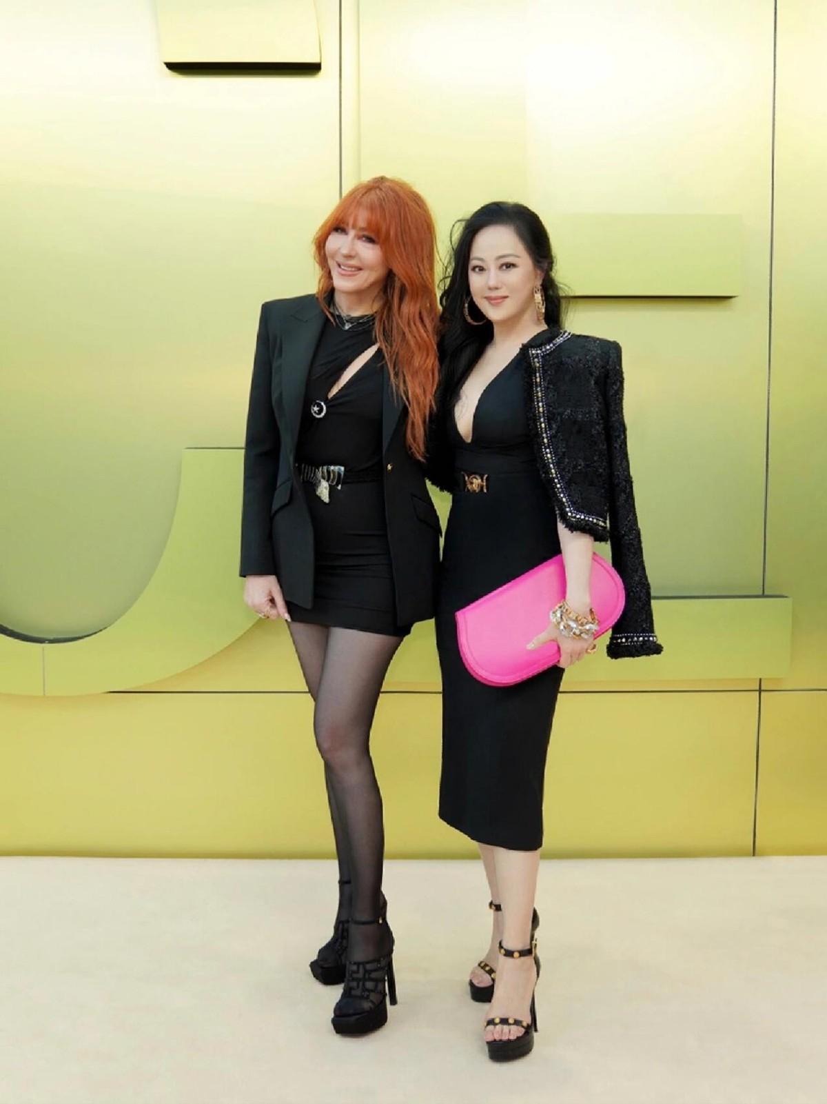 正式場合中經常能看到allblack穿搭,黑色是最保險不出錯的選擇。章小蕙除了在黑色單品上選擇了帶有金屬和香風元素外,更是在配飾上選擇了大膽撞色。一隻玫粉色手拿包,單看有些難以駕馭,但是搭配allblack就是超絕的黑粉撞色!